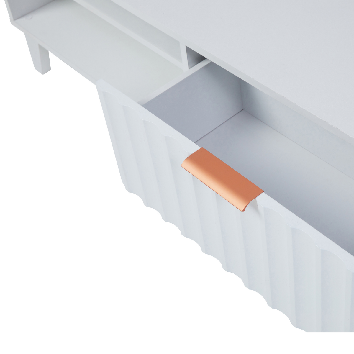 - Rippple design on drawer openings with gold handles
